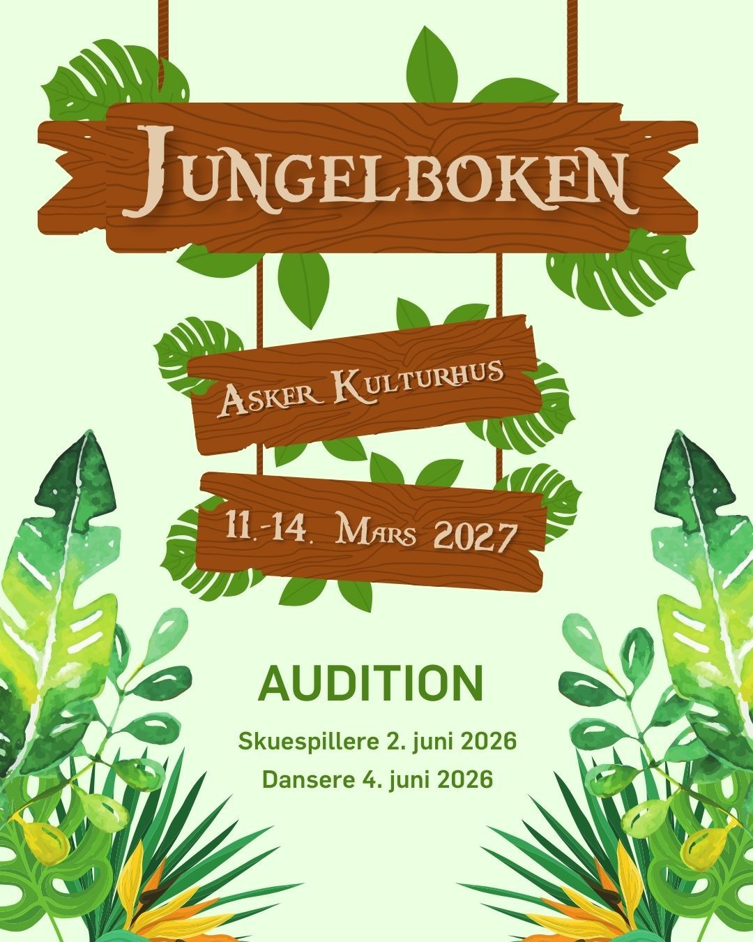 Musikal Produksjoner, i samarbeid med Dansesonen og Musikalskolen, setter opp "Jungelboken" i Asker kulturhus 11.-14. Mars 2027.